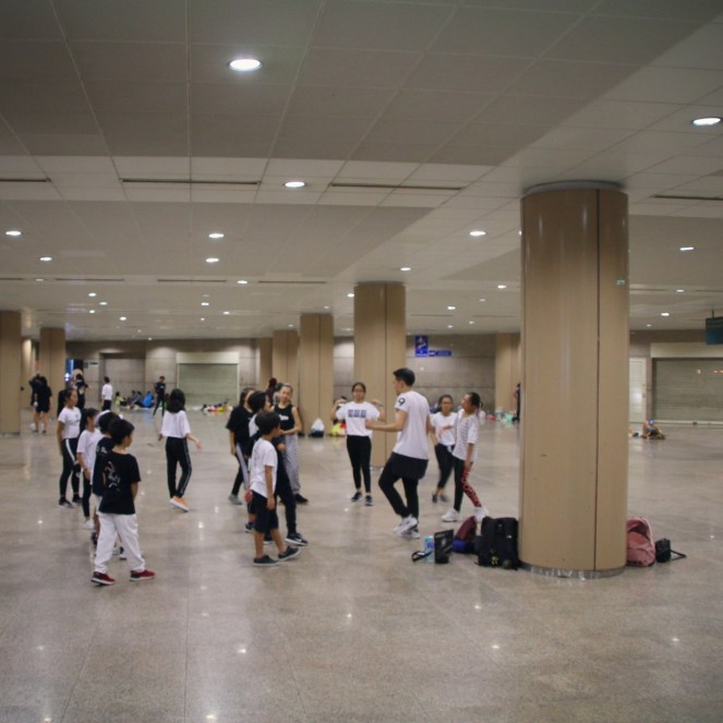 Vi ser sedan barn och vuxna som gymnastiserar och andra som har picknick i undergångarna under de breda gatorna. I undergångarna är det nämligen lite svalare. Hettan är annars tryckande.