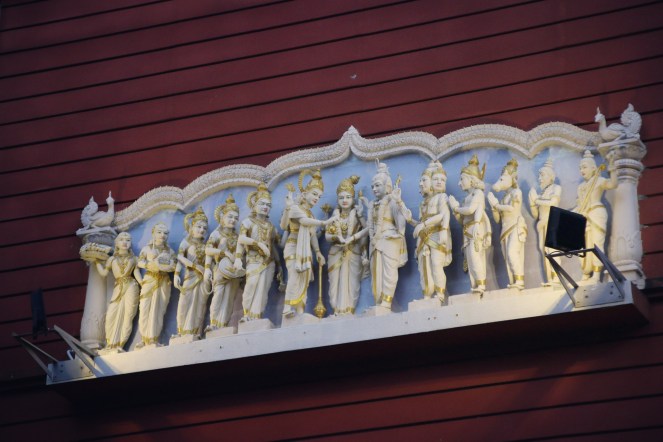 Längs med den breda gatan Serangoon Road ligger färgglada tvåvåningshus. Det är sådana hus som dominerar hela området, men här finns också några flervåningshus, några p-hus och några höghus. Och vi passerar också ett tempel som skymtas bakom ett högt plank. Sri Veeramakaliamman-templet, som det heter, är tillägnad den hinduiska gudinnan Kali. Men vi nöjer oss med att passera förbi i vår jakt efter någonstans att äta.
