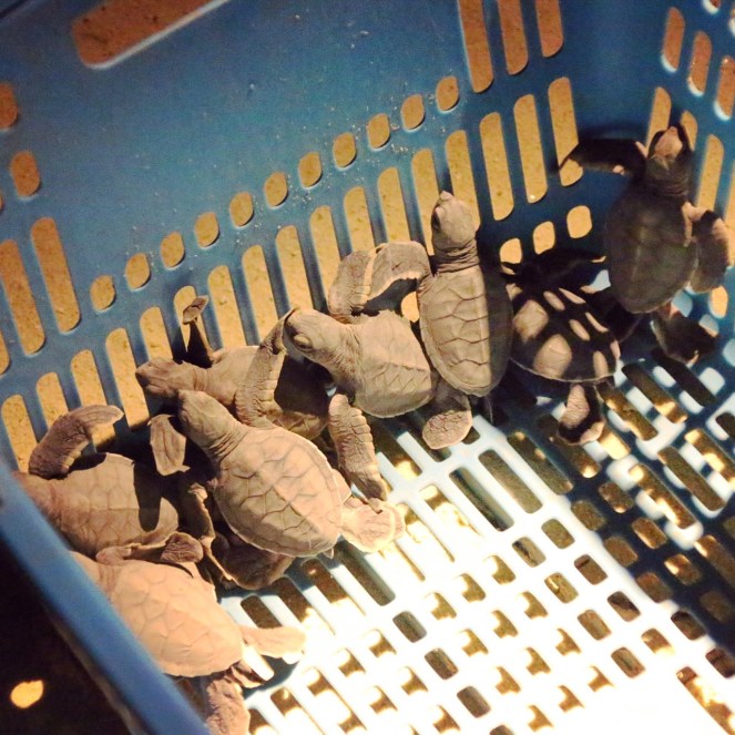 När äggen kläcks samlas ungarna ihop och bärs ner till stranden där de själva får springa ner till vattnet. Med de här åtgärderna ökar antalet ungar som når havet till ungefär det dubbla jämfört med om naturen får ha sin gång. Fram till 2011 ökade antalet sköldpaddor som kom till ön för att lägga ägg år för år men sedan dess har kurvan planat ut. Vår guide förklara det med att eftersom det dröjer lång tid för sköldpaddorna att bli könsmogna, ofta 25-30 år, och runt 2011 hade det gått ett par generationer sedan verksamheten startade och den hade därmed då nått full verkan.