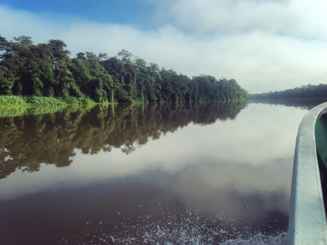 Vi börjar dagen mycket tidig. Vi ska iväg på en tidig morgontur på floden redan innan frukost. Vi bjuds på te och kaffe på Bilit Rainforest Lodge innan båtturen som börjar klockan halv sju. Precis på utsatt klockslag sätter vi oss i båten och sedan bär det iväg genom morgondimman.