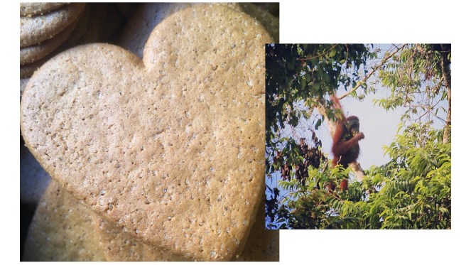 Och palmolja används i en stor mängd produkter som konsumeras runt om i världen. Däribland alltså i många svenska pepparkakor. Råd och Rön har listat vilka pepparkakor som innehåller palmolja som inte är KRAV-märkt. Och som alltså – om vi ska vara helt ärliga – just här och nu – bidrar till att utrota orangutangerna.