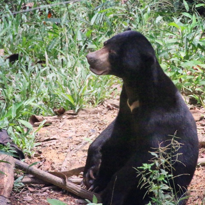 När vi är här träffar vi på fler spännande djur än björnarna, vilda djur som rör sig fritt bland björnarna, något som jag tänkt återkomma till. Men först lite om solbjörnarna, eller som de oftare kallas på svenska malajbjörnarna. Dessa malaysiska solbjörnar är de minsta björnarna i världen och de finns bara i Sydostasien.