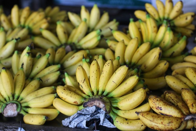 De där små bananerna är så goda! Som du beskriver marknaden så påminner den om permanenta marknadslokaler i Spanien. Fin bild på flickan!