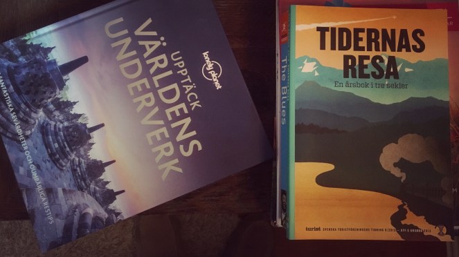 Och så böckerna då. En handlar om världens underverk. Jag skulle ju skriva en hel serie om världsdelarnas bästa underverk, men kom visst inte längre än till Afrika? Där finns många fler böcker som ger mig inspiration att vilja skriva något som till exempel Svenska Turistföreningens ”tidernas resa” och boken om länder som försvunnit.