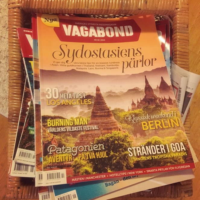 Det var när jag höll på med det där i år som de här tankarna om alla lösa trådar började ta form. Och sedan har jag tänkt på det flera gånger under helgerna. Det kan till exempel handla om det där omslaget på senaste numret av Vagabond som liksom ser så otroligt photoshoppat ut att jag börjar undra om den där staden ens finns på riktigt? Eller alla nummer med ”årets resmål” från 2015 till 2020 som jag samlat i en hög (där 2018 saknas av okänd anledning) för att göra något intressant av.