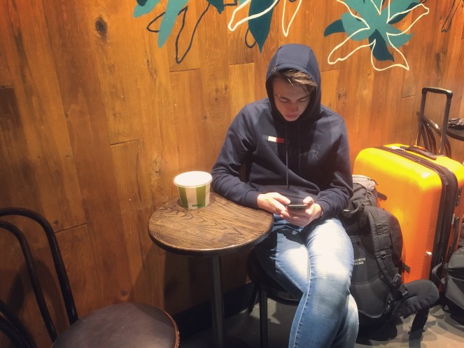 Medan vi sitter där på caféet, äter och småpratar, ser jag en yngre pojke kräkas i en mugg vid cafédisken några meter bort. Bara att hoppas på att vi inte fick med oss några vinterkräksjukevirus från den frukosten. Jag tror dock att avståndet var tillräckligt för att vi ska klara oss.