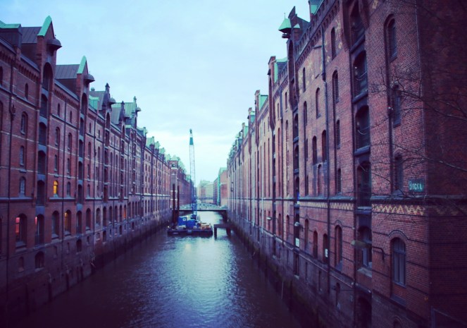 Vi forsatte längs vattnet bort till denna häftiga byggnad innan vi vände tillbaka mot tågstationen via gångbron Kehrwiedersteg, där vi på nytt hade fin utsikt över lagerbyggnaderna, och Deichstraße som är den äldsta kvarvarande gatan i Hamburg Altstadt.