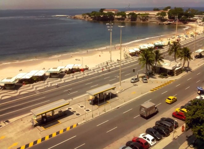 Inte ens på Rio de Janeiros mest berömda strand råder det någon trängsel just nu. Se bara på de här livebilderna.