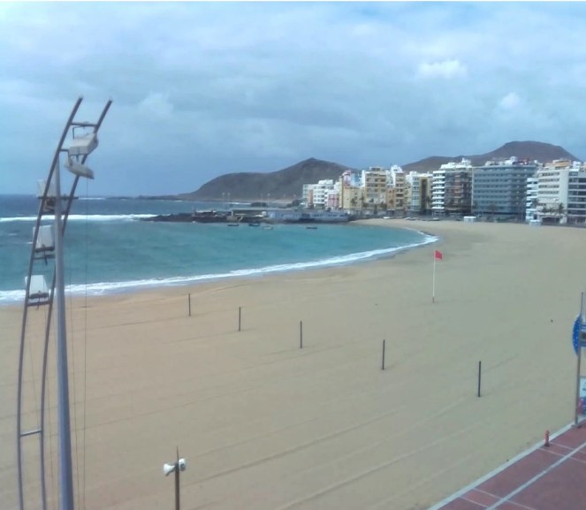 Playa Grande in Las Canteras på Gran Canaria har också en webbkamera. Men inga badgäster just nu. Lika öde som på de andra platserna här.