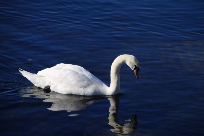 En knölsvan i havet, i Karlshamn, Blekinge.