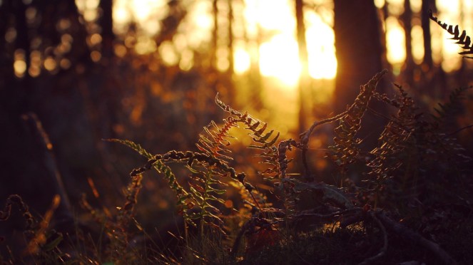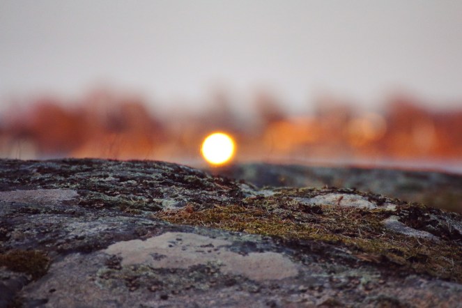 Jag fotograferar en tärna i skyn och stensöta i solnedgången. Blåbärsriset som precis börjat blomma.