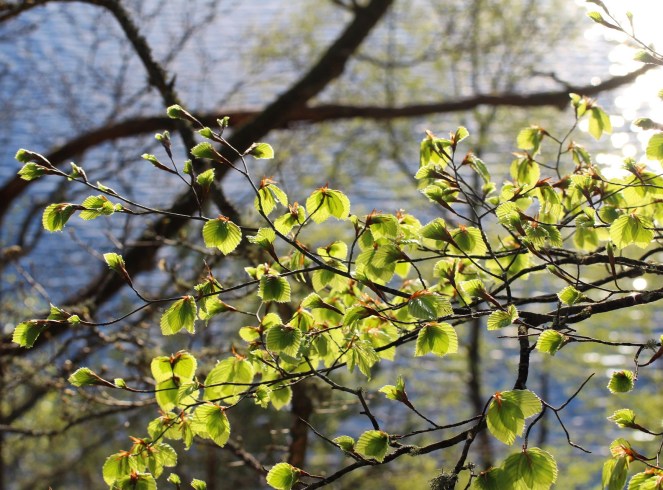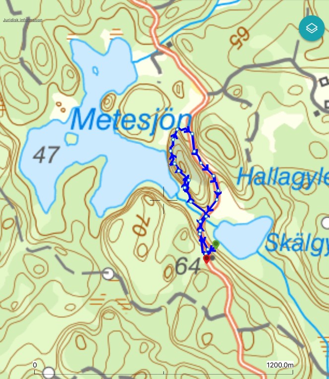 Vi parkerar bilen intill vägen, där det finns ett litet utrymme, mitt emot Skälgylet. Sedan går vi ner längs vägen tills vi passerat bäcken som förbinder de båda sjöarna. Där går vi in på en stig som leder in mot Metesjön. Vi går genom boksog som precis håller på att slå ut.