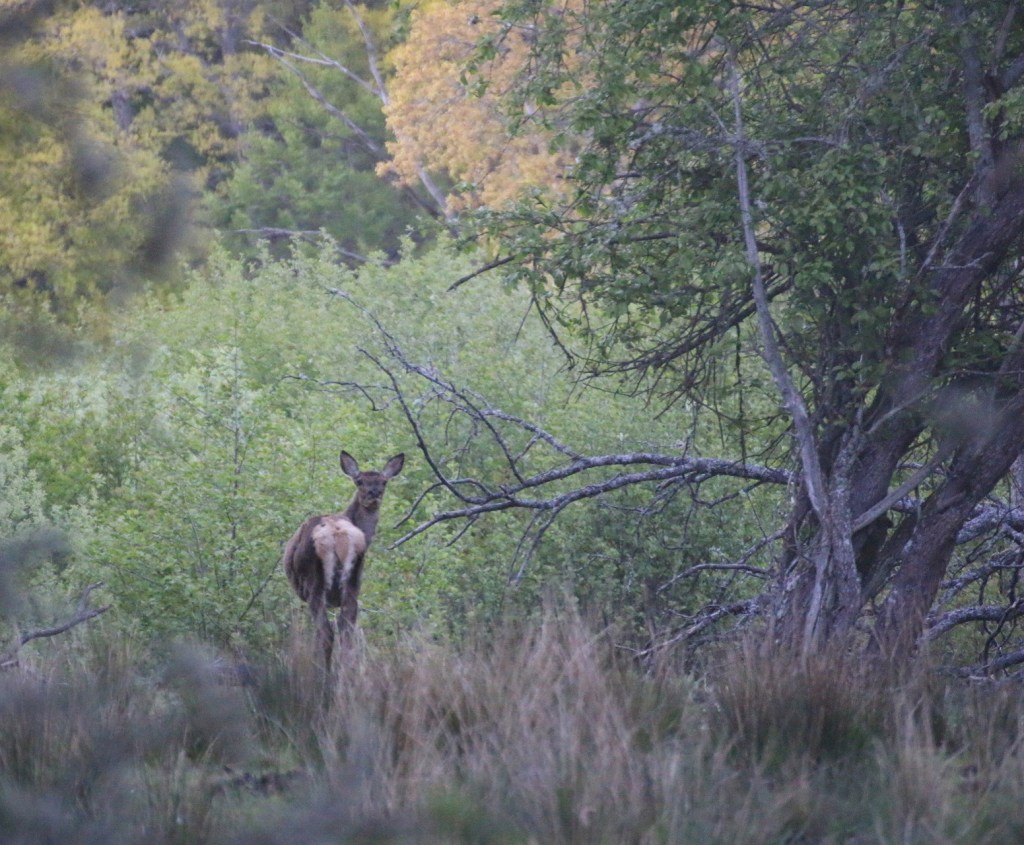 Det som är lite speciellt med Blekinges stränder är att lövskogen ofta växer ända ner mot vattnet. Här är det mycket bok och en del alkärr. Det gör att vattnet oftast inte mer än högst skymtas mellan träden, trots att vi går mycket nära strandlinjen. Ibland kliver vi ut bland träden för att få bättre utblickar över havet som ligger helt stilla i vikarna den här kvällen. En häger lyfter när vi kommer närmare och ger sig av över vattnet.