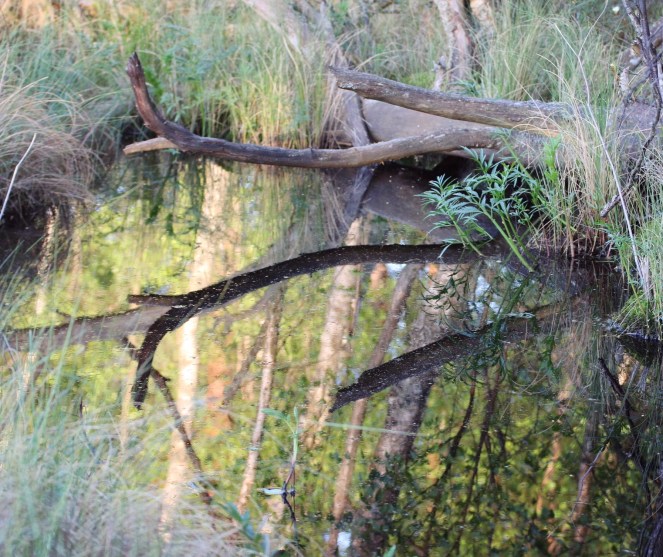 En död gren speglar sig i vattnet.
