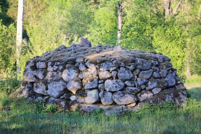 Och så har vi då alla noggrant och vackert staplade stenrösen, som också de bidrar till landskapets lätt magiska karaktär. På ett fält står en rostig gammal plog.