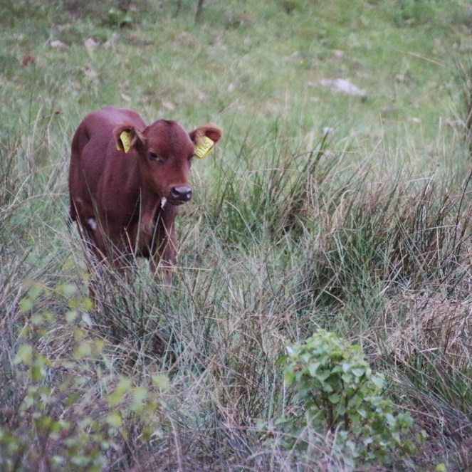 På vägen tillbaka möter vi ett gäng nötkreatur mitt på stigen. Det är de som håller landskapet öppet här och starkt bidrar till stämningen av en svunnen tid. Världens bästa lanskapsarkitekter. De har horn och är stora. Vi provocerar dem inte genom att närma oss för snabbt. Lugnt och stilla tar vi ett steg i taget tills de flyttar på sig och vi kan fortsätta på stigen.