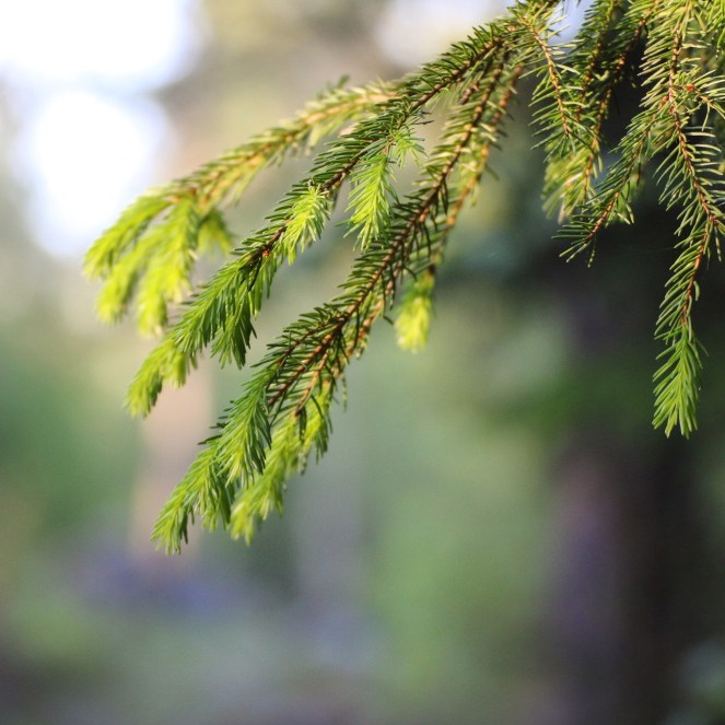 Nya årsskott på en gran.