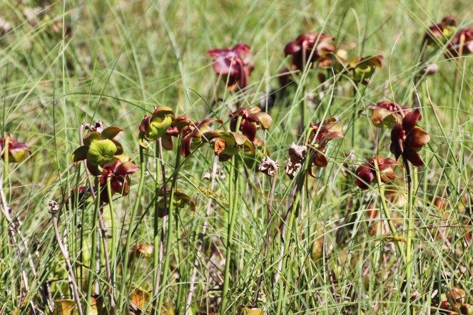 Det är nämligen både gungfly och väldigt blött i den lilla mossen där det växer stora mängder av den köttätande flugtrumpeten.