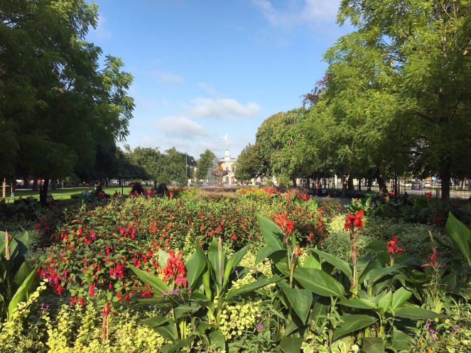 Och statyn den föreställer Karl XIV Johan. Men det är inte den så mycket. Det är mer blommorna, träden, kaktusplanteringen (som håller på att plockas ner för i år nu) och Delfinfontänen som gör parken till det den är.