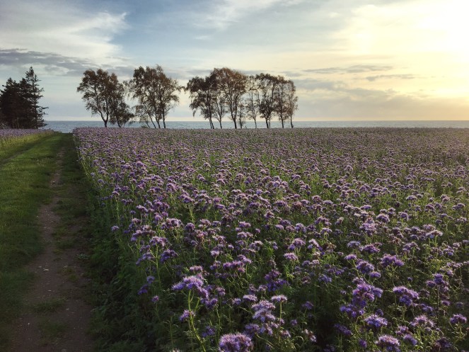 Jag har sett lilablommande fält förut. I Provence i början av juli. Där var det lavendel som blommade.