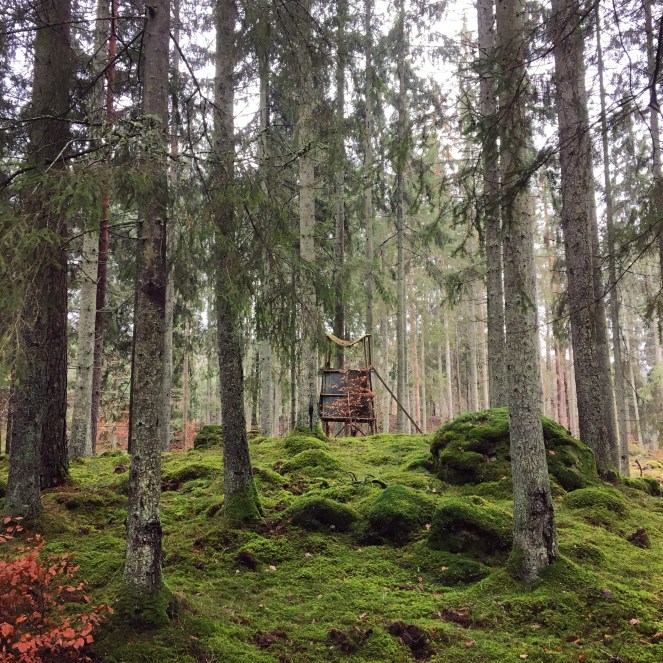 1. Jag hade röd jacka, men kände ändå att det kunde kvitta när vi väl sett att jägarna var där. Ja, det är lärk vid skogsvägen. Jakttornet ser ut att ha sett sina bättre dagar men jag tycker att det passar ihop med mossan. Tack för dina synpunkter. Dem värdesätter jag. 💕