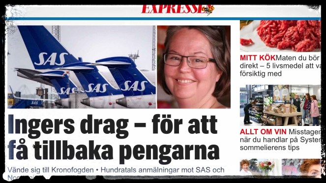Sedan hände ingenting. Förrän igår vid lunch. Då kom artikeln ut på Expressen. Mitt namn i rubriken. Jag upptäckte den ett par timmar senare. Men artikeln handlar om mycket mer än bara mig. Där framgår bland annat att många av SAS kunder fortfarande väntar på sina pengar. En av dem är också intervjuad. Där framkommer också att vi är totalt 275 personer som vänt oss till Kronofogden för att få tillbaka pengar från SAS. Och att Konsumentverket nu kräver flygbolaget på en miljon kronor i vite om flygbolaget fortsätter dröja längre än sju dagar med återbetalningarna. Samt att SAS vägrar svara på hur många kunder som fortfarande väntar på pengar, och hur lång tid det kan ta för dem att få sina pengar tillbaka. Problemen gäller för övrigt fler bolag än bara SAS. Norwegian nämns särskilt i artikeln.
