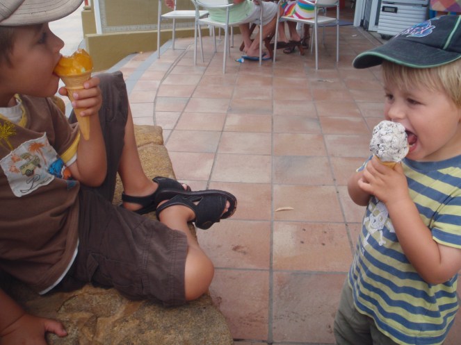 Den dagens utflykt avslutades med glass innan det var dags att ta bussen tillbaka till Noosaville igen. Anton valde mangoglass och Albin vanilj med chokladbitar i. De skulle mycket möjligt kunna göra exakt samma val idag. Deras smakpreferenser består. I alla fall i vissa delar.