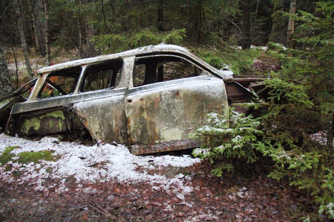 Den 21 december 2014 var en söndag. Anton, vår förstfödde, skulle spela innebandy i Ryd. Under tiden som han bytte om och laddade upp med laget besökte vi andra tre i familjen bilkyrkogården på Kyrkö Mosse. Platsen ligger strax utanför Ryd längs länsväg 119 mot Hässleholm. Det är en bilkyrkogård med en lång historia. En man vid namn Åke Danielsson bedrev torvbrytning på mossen innan han vid slutet av 1940-talet gick över till att bedriva en bilskrot på platsen. Idag är de av naturen delvis övervuxna bilarna närmast kultförklarade av amatörfotografer från hela landet.
