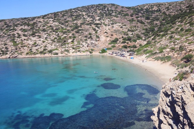 Grekland har många väldigt vackra stränder varav många normalt är lite väl fulla av folk. Till exempel har de båda joniska öarna Zakynthos och Lefkada några fantastiskt bildsköna stränder nedanför dramatiska klippor, men som numera tyvärr blivit lite för populära bland turister på dagsutflykt. Mitt val som Greklands vackraste strand blir därför en ganska okänd strand på den ö som jag utsett till både Kykladernas och hela Greklands vackraste ö, nämligen Amorgos.