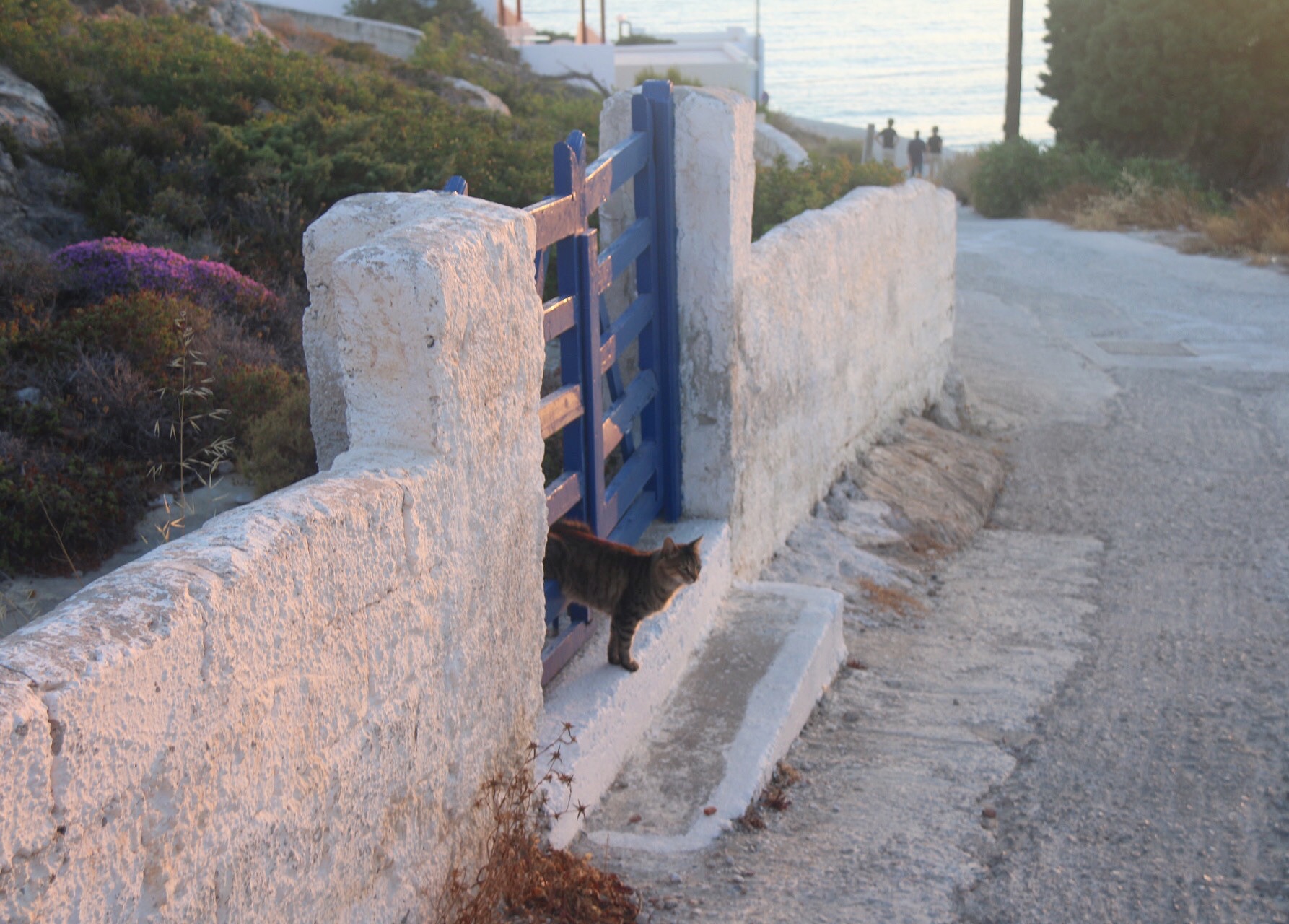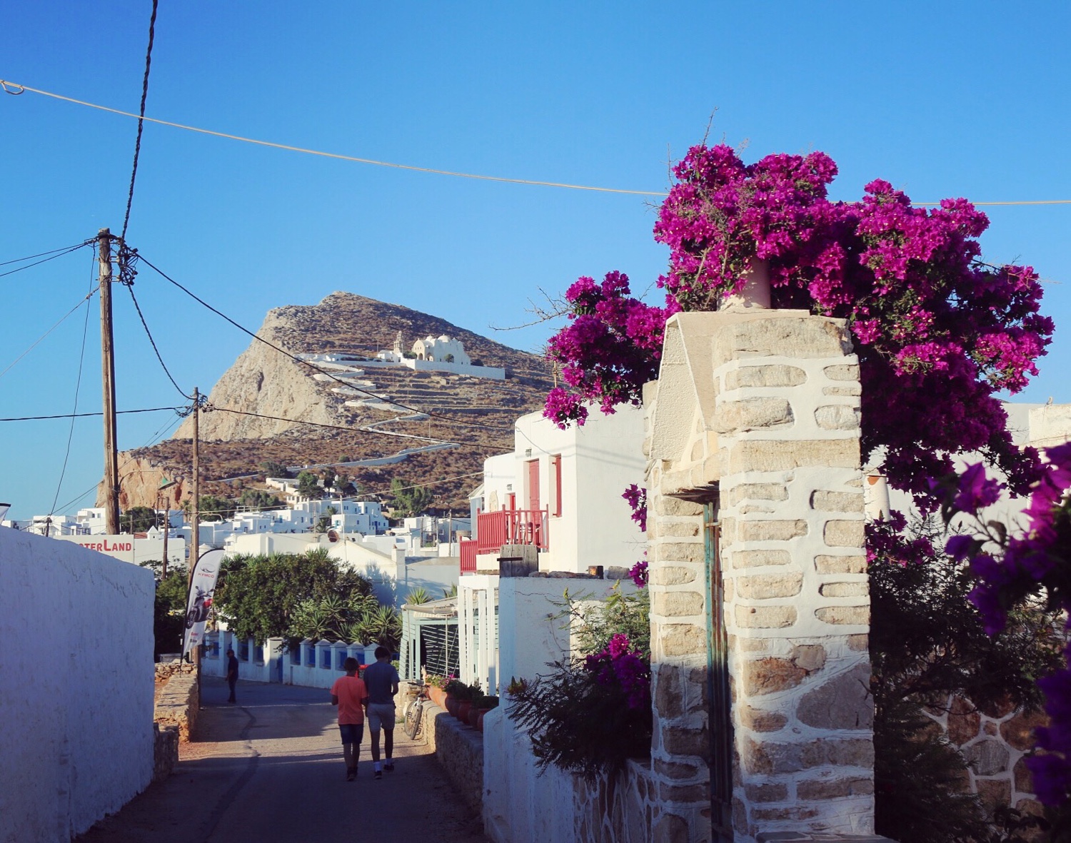 En representant för boendet jag bokat in oss på kommer och möter oss vid båten när vi anländer till nästa ö i ordningen. Det är nog tur, för lägenheten vi hyrt är inte helt lätt att hitta bland trappor och gränder högt uppe i Katapola. Att han skjutsar oss ett par hundra meter i bil känns dock lite överdrivet.