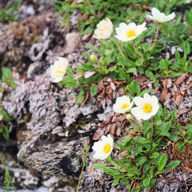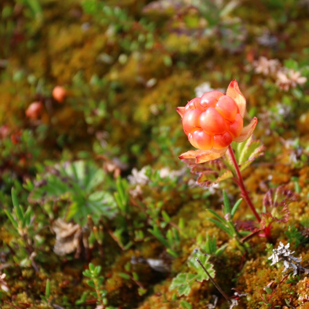 På vägen tillbaka går vi bland annat på spänger över hjortronmyrar. Massor av härliga blommor ser vi också längs vår promenad. Trots att det är i början av augusti ser vi en blomsterprakt som vid midsommartid i södra Sverige: midsommarblomster, prästkragar, linnea och orkideer bland annat.