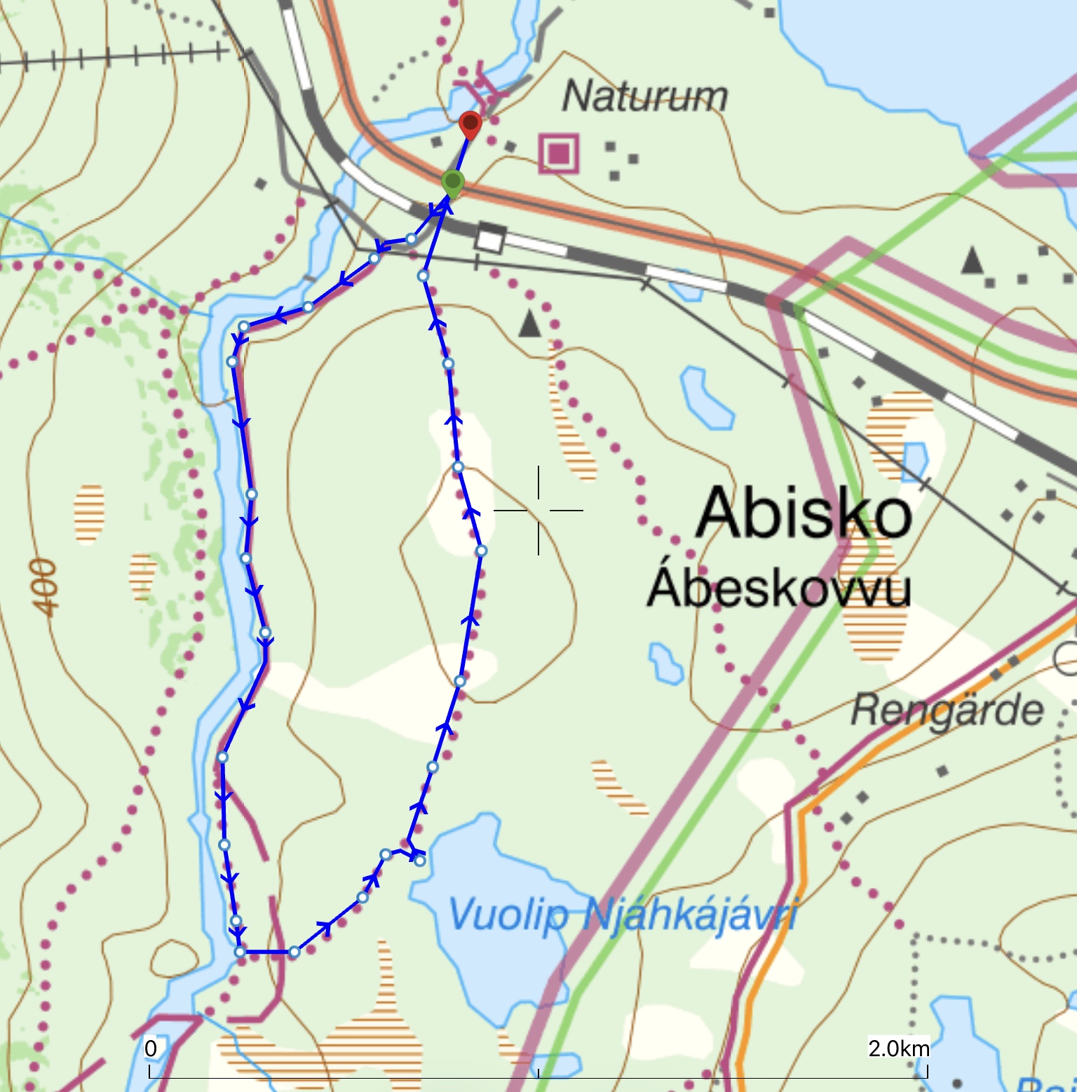 Om du inte som vi, redan har gjort femkilometersvandringen ovan kan jag rekommendera att gå över Abiskojåkka och följa endera av sträckningarna på den vandringen istället, eftersom björkskogen var lite långtråkig att gå igenom mot slutet. Vill du ändå följa vår vandring i appen Viewranger hittar du den här.