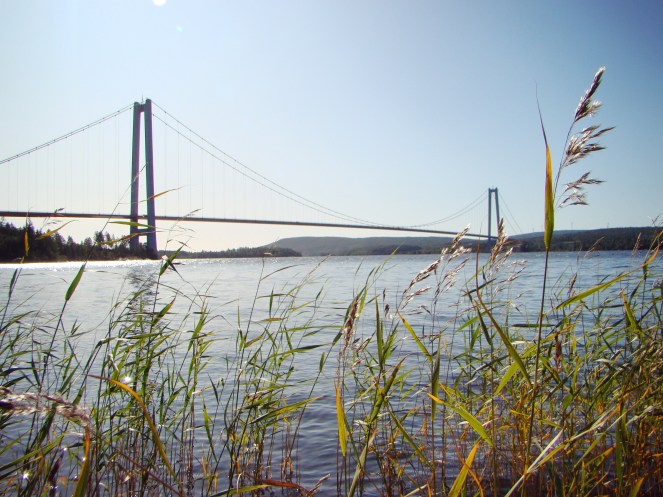 Men vi börjar med bron. Högakustenbron är en hängbro för E4:an över Ångermanälven, nära åns mynning i havet. Den finns precis på gränsen mellan Kramfors och Härnösands kommuner.