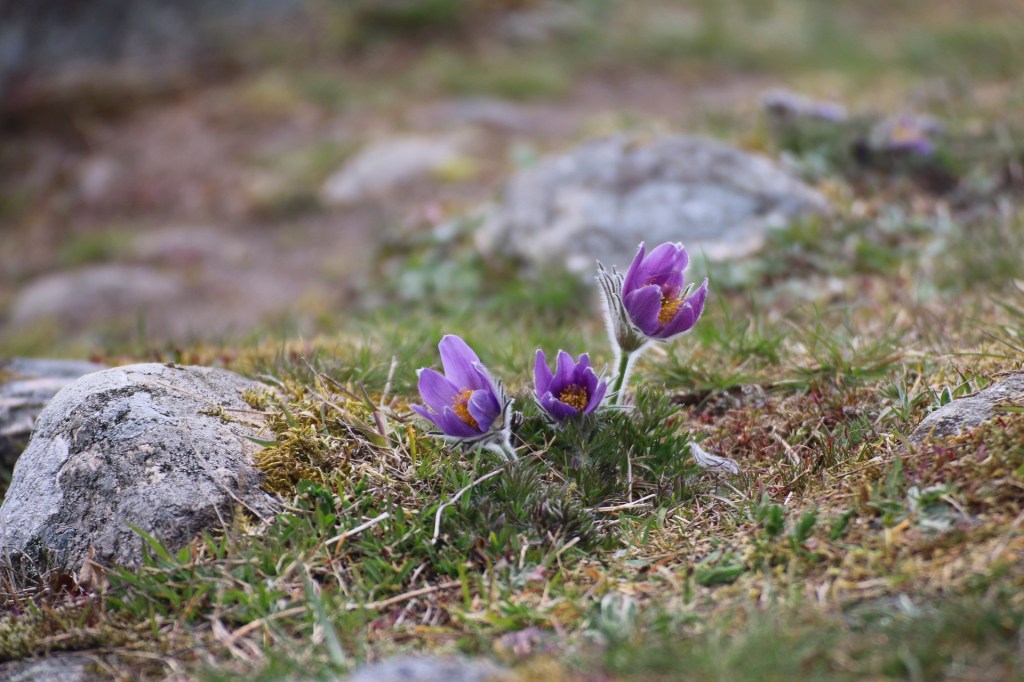 Vi passerar genom en grind och hamnar direkt på en öppen hagmark. Här hittar jag den första buketten backsippor för dagen. Som jag så klart inte kan låta bli att fotografera.