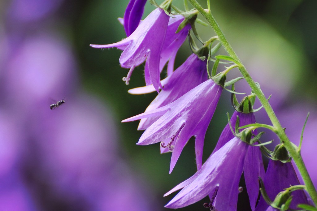 De ser ut som blåklockor, men ändå inte riktigt. De är längre. Också själva klockorna är lite mer långsmala. Bladen är större. Klockorna är fler på varje stängel. Ofta och gärna lutar de sig ut så att alla klockor hamnar på en sida. Och så är de lite mer lila än vanliga blåklockor. Knölklockor, heter de, och de användes som trädgårdsväxt redan av vikingarna.