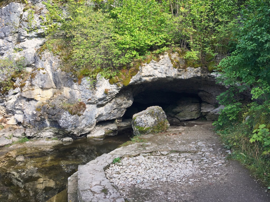 Vi tittar förbi den naturliga grottöppningen efter vår guidade tur inne i grottan, men det går självklart lika bra att se grottans öppning innan guidningen.