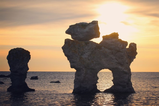 Sedan åker vi på en kvällsutflykt till Fårö. Där hittar vi till det som måste vara Fårös och kanske hela Sveriges coolaste crêperie helt och hållet av en slump. Nästa stopp blir i kvällsljuset vid Gotlands mest kända rauk. Och snyggaste. ”Kaffepannan” eller ”Hunden”, heter den. Och där finns flera andra snygga raukar. Vid naturreservatet Gamle Hamn. Avslutar gör vi med flera stopp i naturreservatet Digerhuvud medan solen går ner. Där ser vi fler raukar. Dock inte den som reservatet är döpt efter. Tror jag.