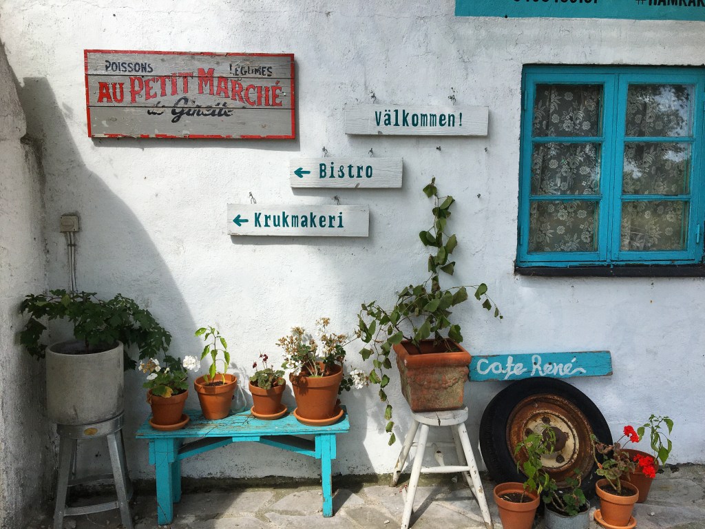 Eftersom restaurangen vid Hoburgen visade sig ha stängt på måndagar letar vi reda på Hamra Krog som ligger 20 minuter därifrån. Det är ännu en restaurang på franskt tema. Den här serverar oss Croque Monsieur respektive rökta räkor.
