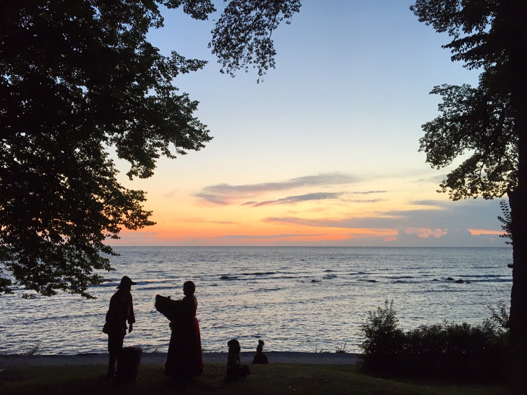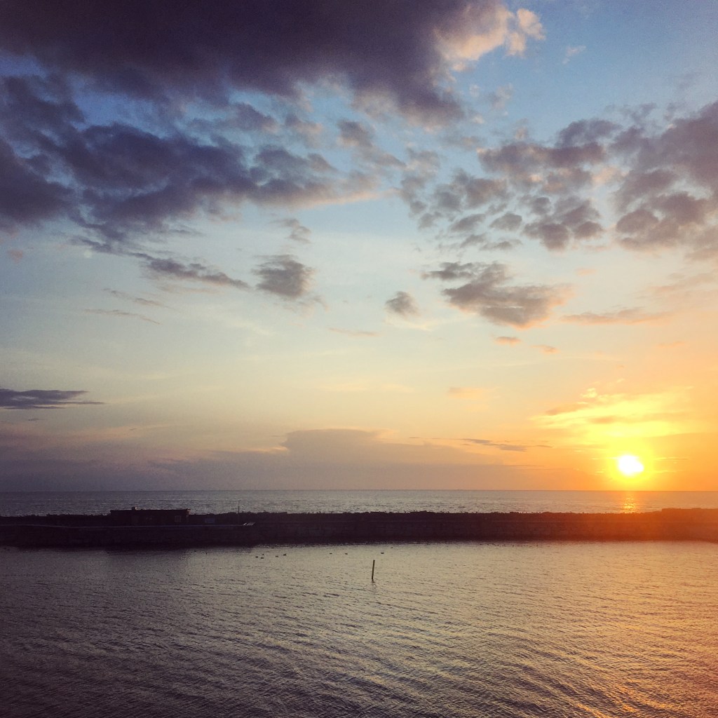 Från färjan ser vi en sista solnedgång i Visby för den här gången.