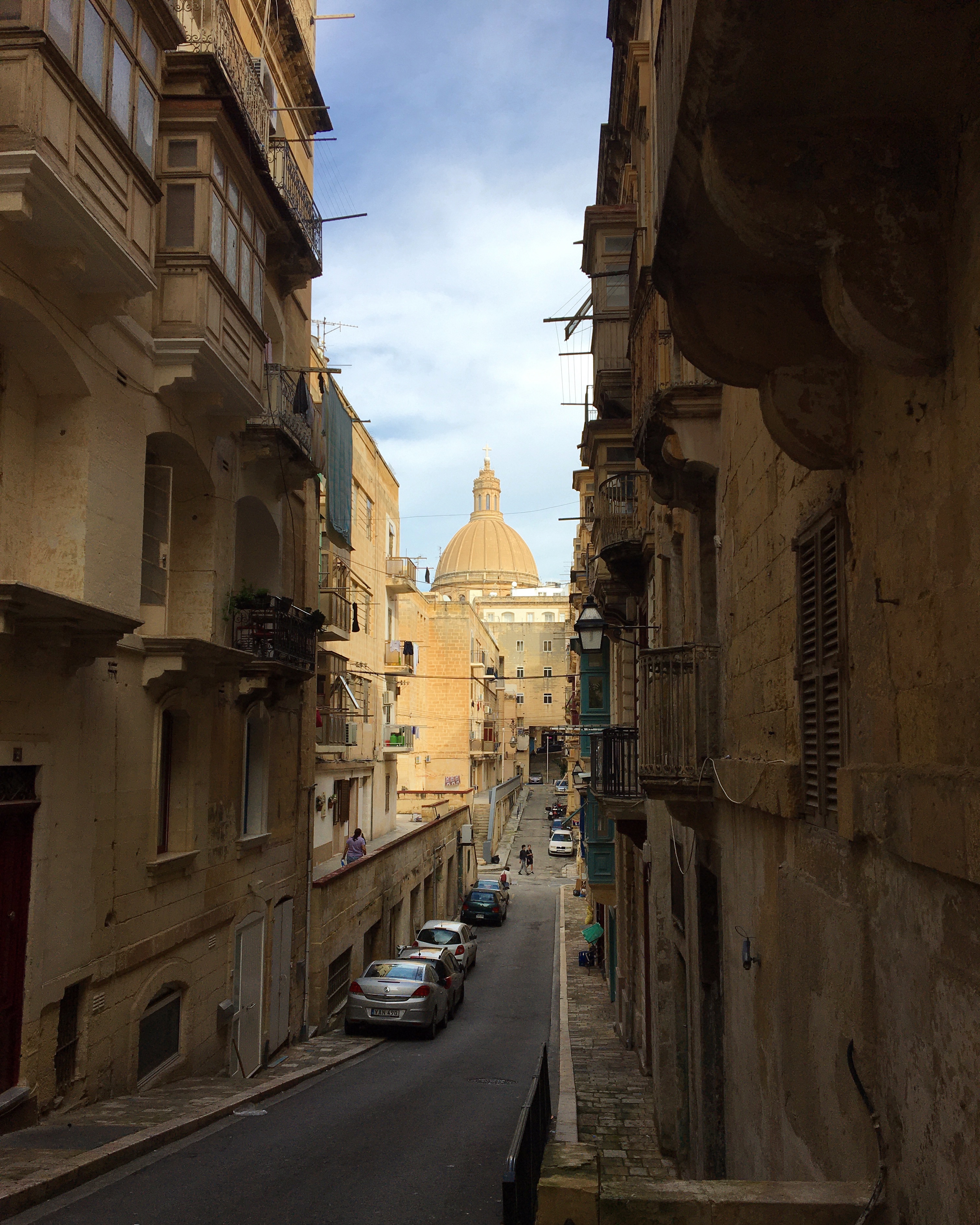 Valetta präglas av att den är byggd som en riddarnas medeltida huvudstad med försvarsmurar och andra befästningar som omger staden. Arkitekturen på huvudstadens gator och piazzor sträcker sig annars från mitten av 1500-talets barock till modernism. Staden bombades hårt under andra världskriget vilket har påverkat stadsbilden en del. Beigea stenhus och många burspråk präglar också Valletta. Att det ligger en och annan soppåse på gatorna den dagen soporna ska samlas in bidrar ju inte precis till att försköna, men är heller tyvärr inte unikt för just den här staden eller det här landet.