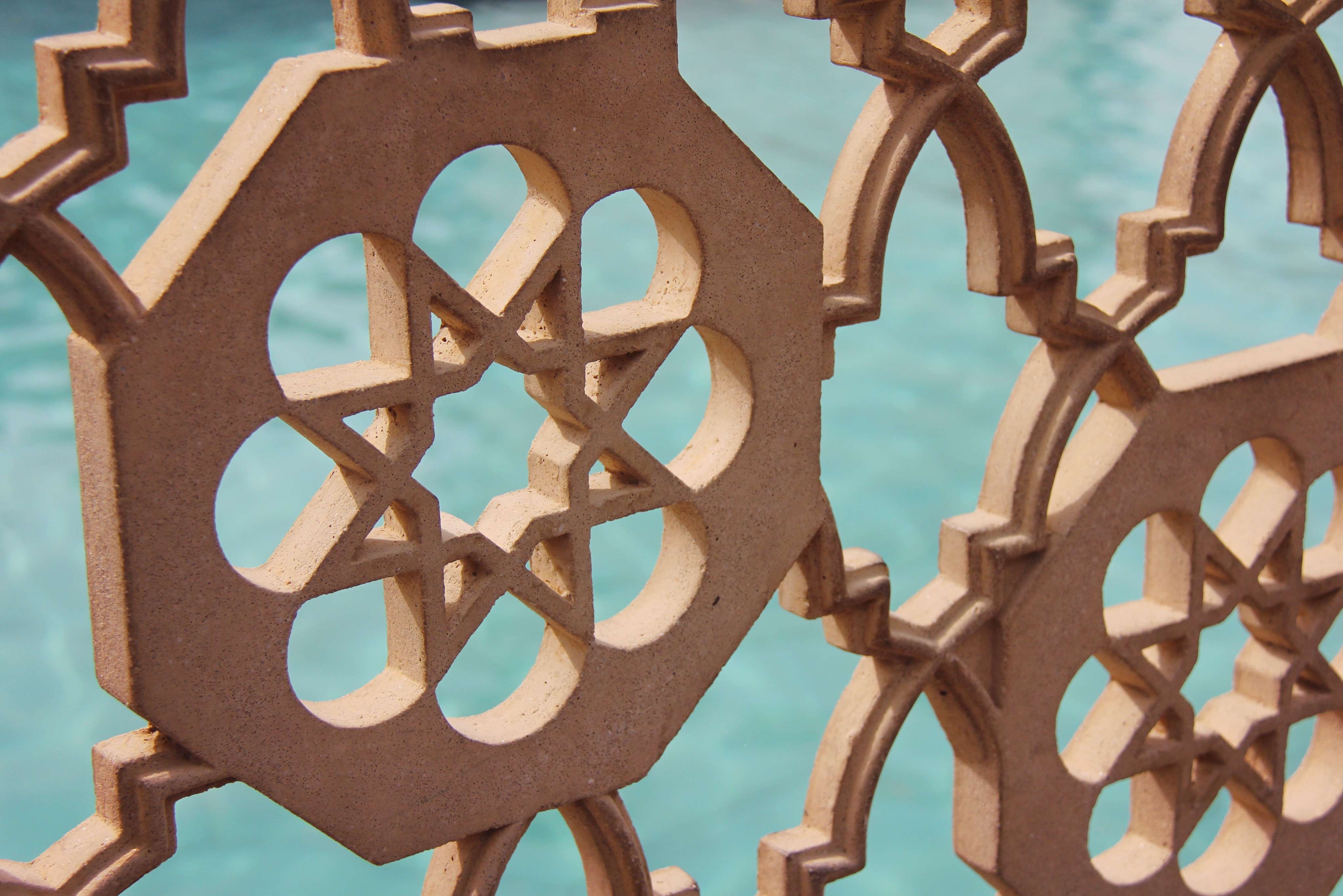 Byggnaden är så hög att den är svår att fånga på bild. Jag provar med att fotografera den i bildens diagonal. Det blir inte särskilt bra. Så jag övergår till att fotografera det vackra staketet på bron istället.