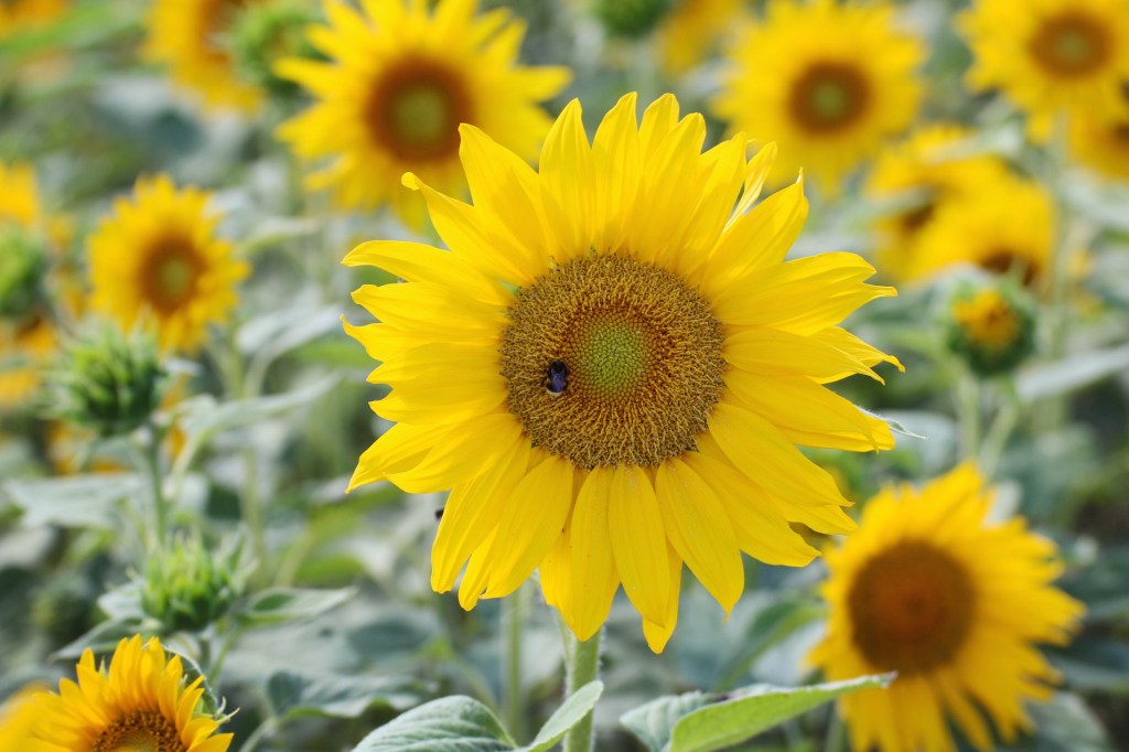 Solrosor nästan så långt ögat når.
