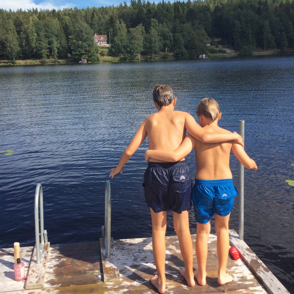 Det är fem år och sex månader sedan. Den 29 juli 2016. Två bröder som badar ifrån sin morfars brygga i sjön Näknen i Östergötland. Mina grabbar.