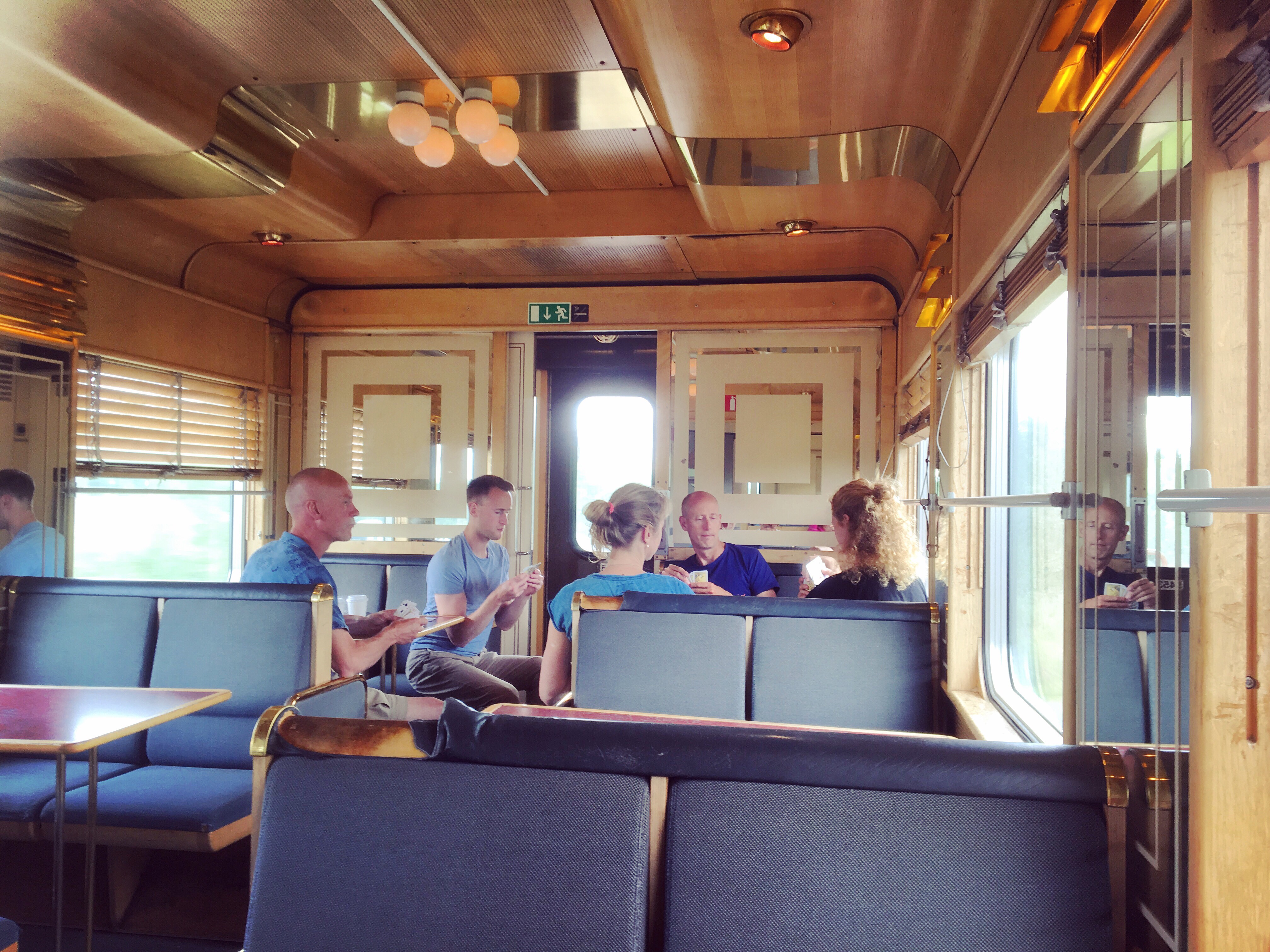 I en bil sitter du trångt och inte heller i en buss eller på ett flyg reser du gärna på dig bara för att gå en runda och sträcka på benen. På tåget är det där mycket lättare.