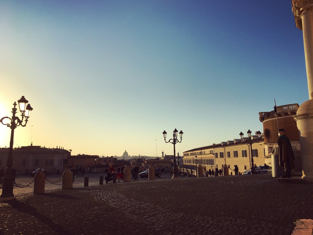 Tillbaka på hotellet tar jag en sådan där gratis turistkarta och läser in mig. Det är Quirinalen vi har varit på. Det är en av Roms berömda sju kullar och den väl vaktade byggnaden måste ha varit presidentpalatset.