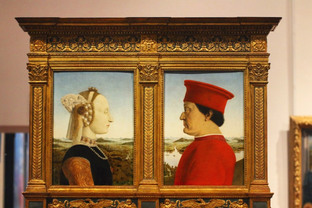 Annars blir jag allt mer uppfylld av det som sker. När jag tar en paus från nyheterna och tittar på bilder från ett museibesök vi nyss gjorde i Florens stannar jag till vid en tavla föreställande hertigen och hertiginnan av Umbrien. Men är inte hertiginnan väldigt lik en viss rysk diktator?