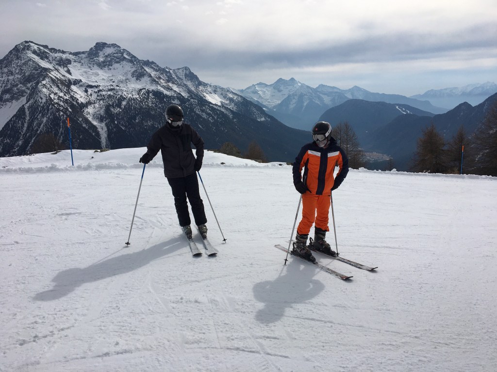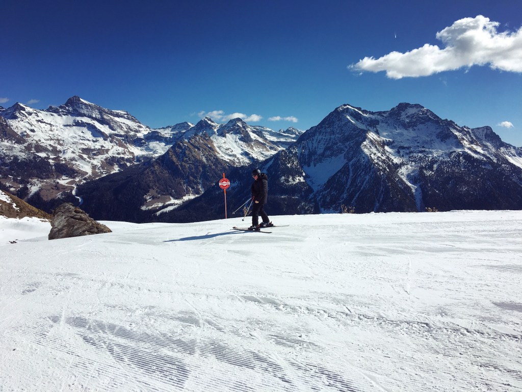På lördagen var det dock mer folk än på torsdagen och fredagen. Inte så konstigt med tanke på att den här platsen bara ligger drygt två timmar med bil från Milano som har 1,4 miljoner invånare och 1,5 timmar från Turin som har 900 000 invånare. Störst påverkan gjorde detta på tillgången till matbord utomhus, vid restaurangen i backen. På lördagen valde vi därför att äta lunch på vårt hotell som ändå låg nära och där det fanns flera bord lediga i solen. Vi bodde på Hotel Santa San som alltså ligger högt upp i byn, helt nära backarna.