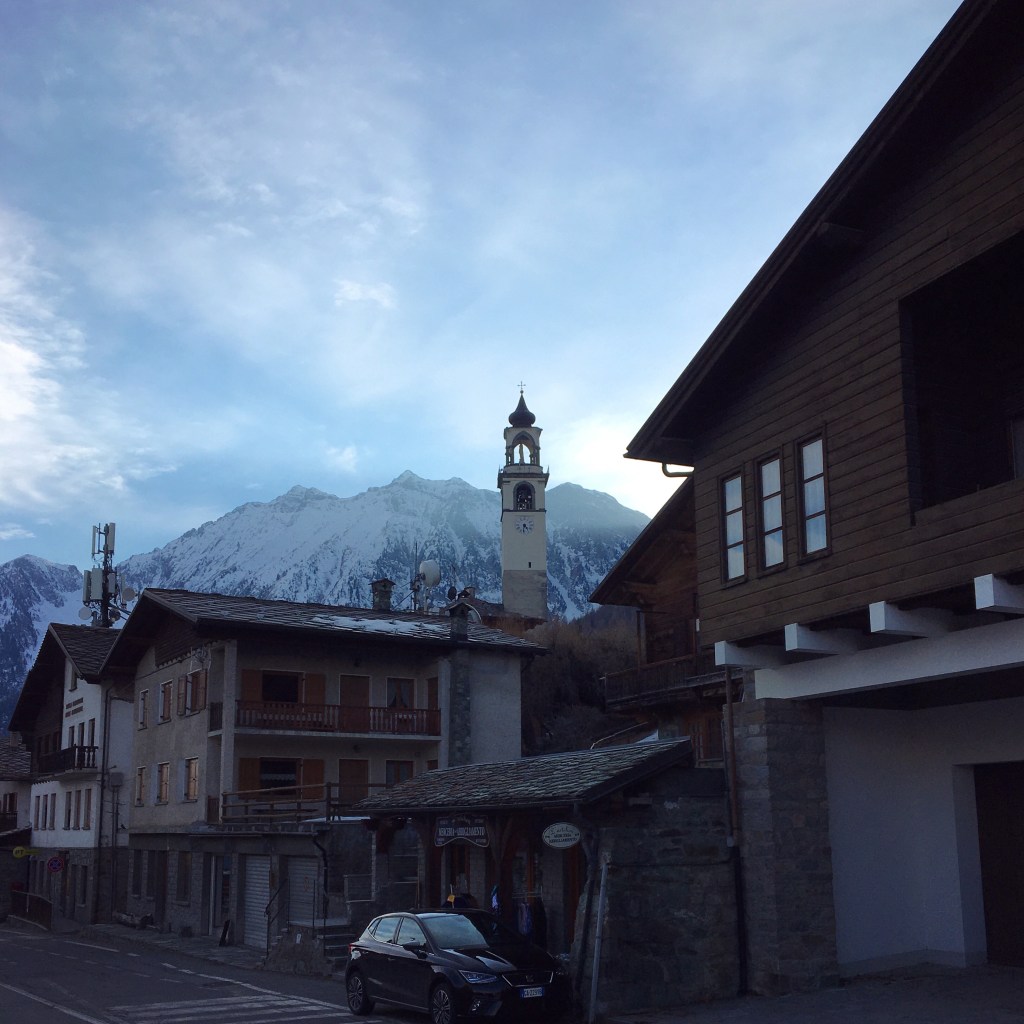 Det som är lite speciellt med den här delen av Italien, Aostadalen, är att här pratas både franska och italienska. Och även egen dialekt av frankoprovensalska. Och ja det märks. Vi hörde franska talas ibland och på tåget från Turin mot Aosta (där vi klev av i Verres) ropades det ut i högtalarna på både italienska och franska.
