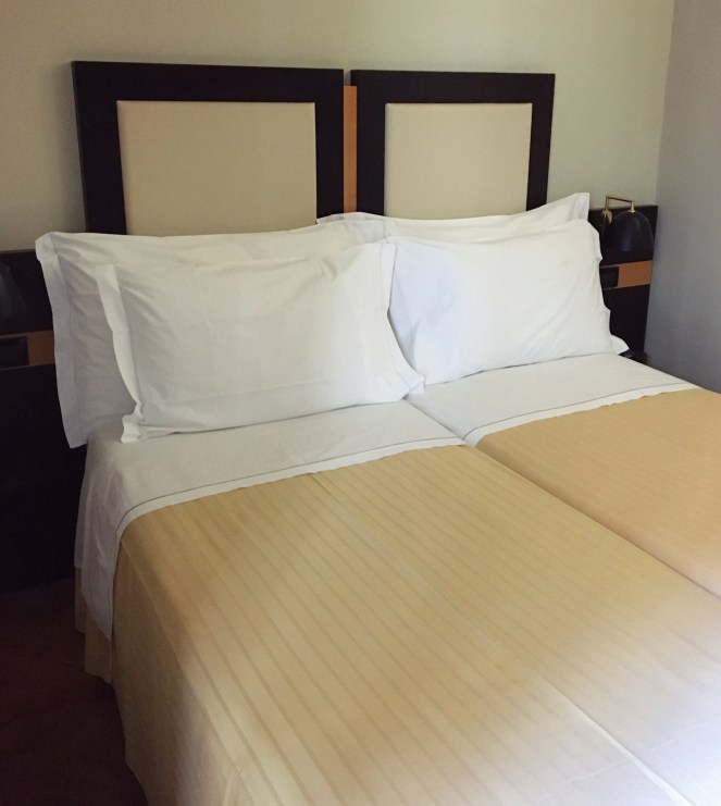 Rummen är mindre än jag har väntat mig utifrån bilderna på bokningssajten. Vidvinkelobjektiv på kameran de fotograferat med. Gissar jag. Men de små rummen är ganska mysiga ändå.