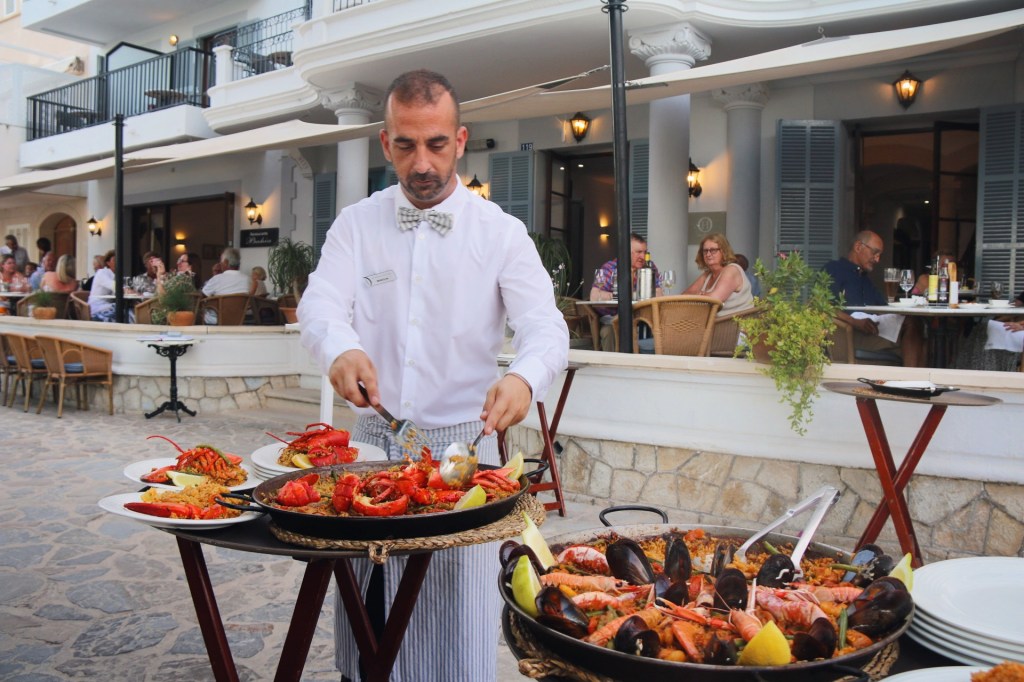 Senare på kvällen är sedan hela sällskapet inbokade på en restaurang där vi får sitta vid ett långbord, precis intill stranden. De flesta av oss väljer att äta paella med skaldjur. Två olika varianter. Vi skålar för vår 75-åring som nu har hunnit fylla år ytterligare två gånger. En underbar måltid i den ljumma och faktiskt relativt ljusa kvällen.